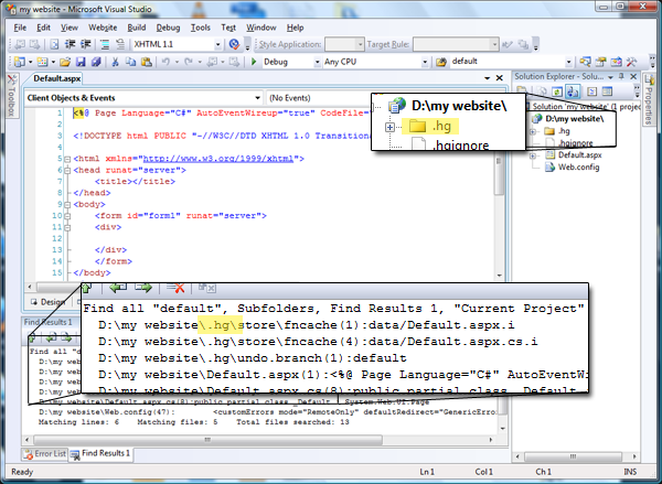 hg folder in visual studio